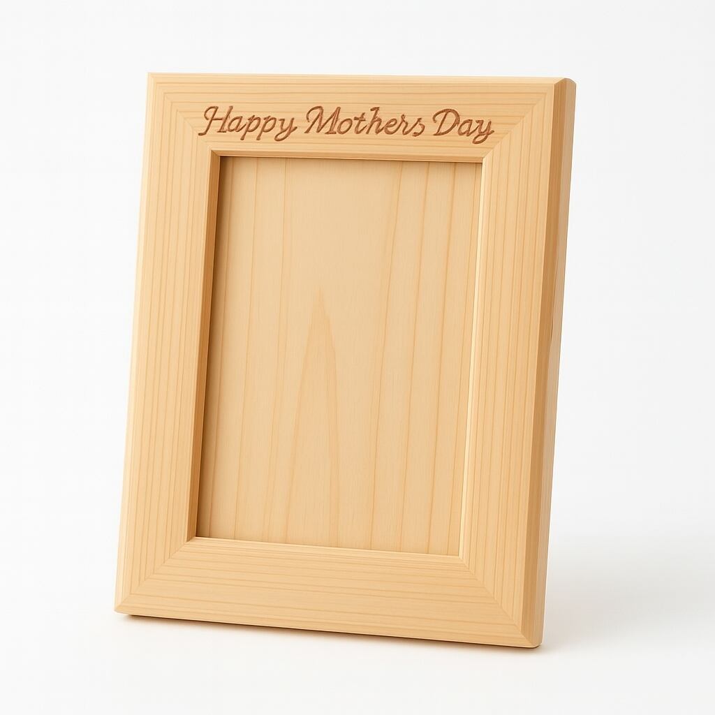 ヒノキ部分にはオリジナルのメッセージや名前を刻印できますので、特別な日のプレゼントにもピッタリです(写真は母の日のメッセージ例)